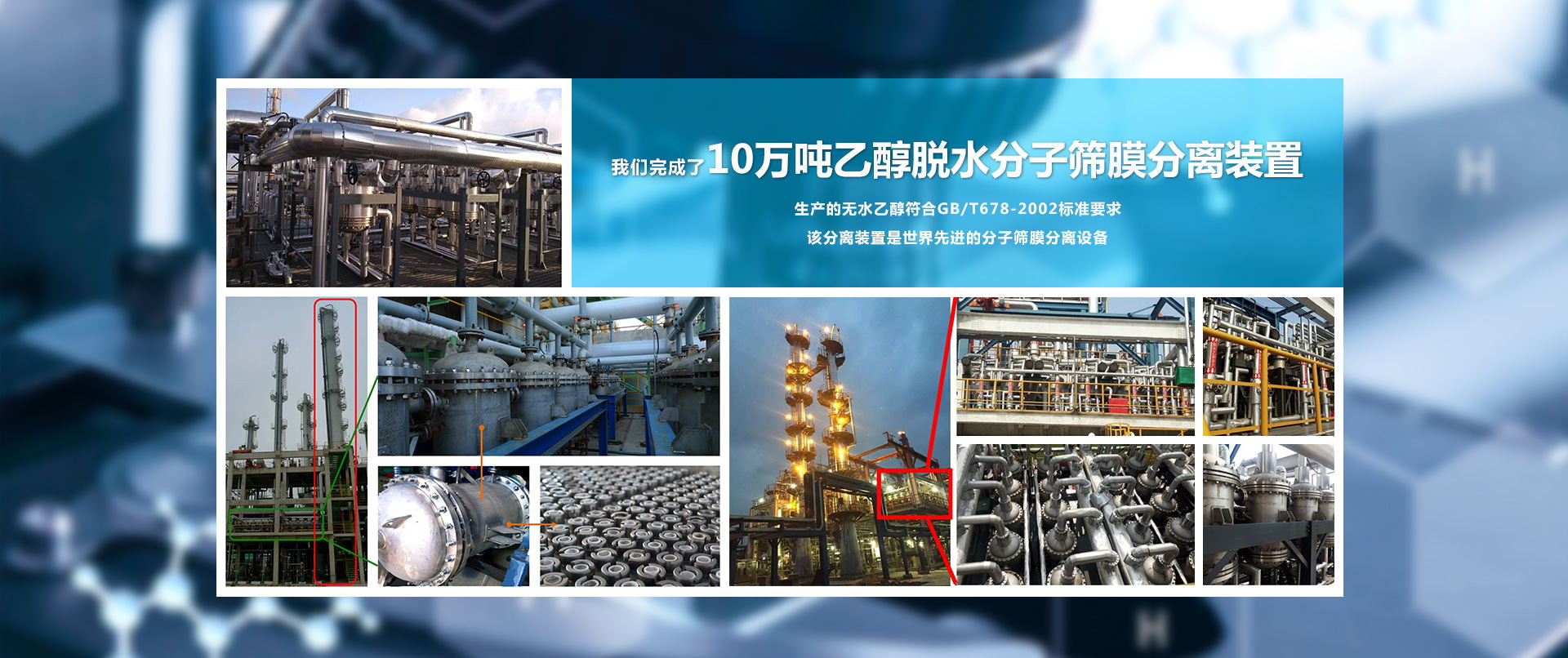 大連海斯特科技有限公司在索普集團(tuán)醋酸加氫制乙醇項(xiàng)目中完成3萬(wàn)噸/年乙醇分子篩膜脫水項(xiàng)目。